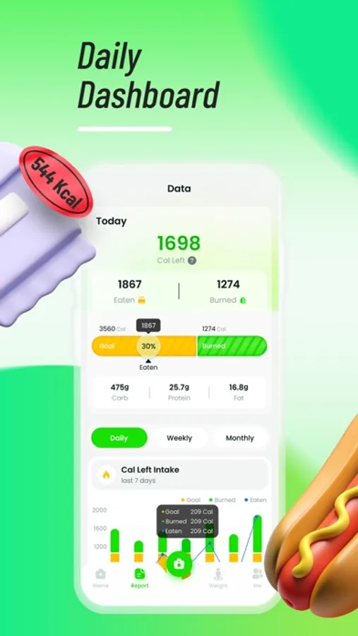 - New! Calorie Expenditure Tracking: Monitor both intake and burned calories for holistic health insights.