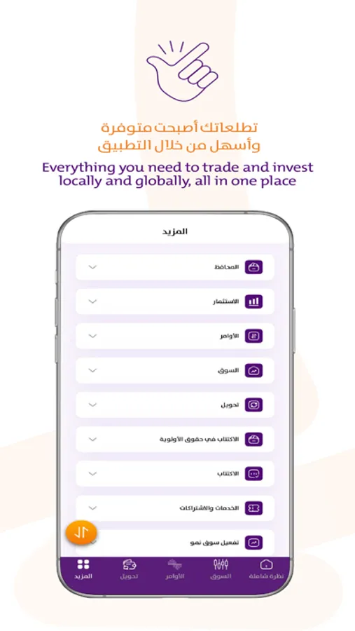 Get direct access to the Saudi market, GCC markets, and international markets. Trade stocks, mutual funds, derivatives, sukuk, bonds, and participate in IPOs-all in one place.