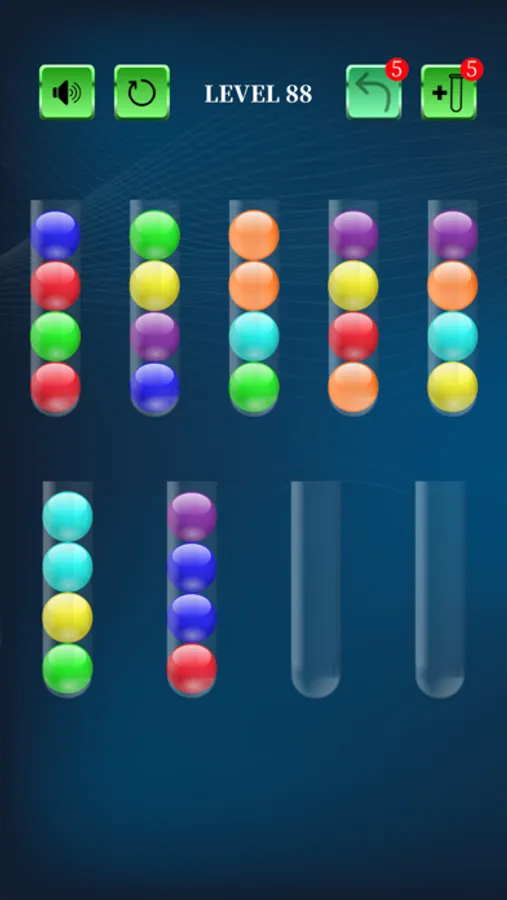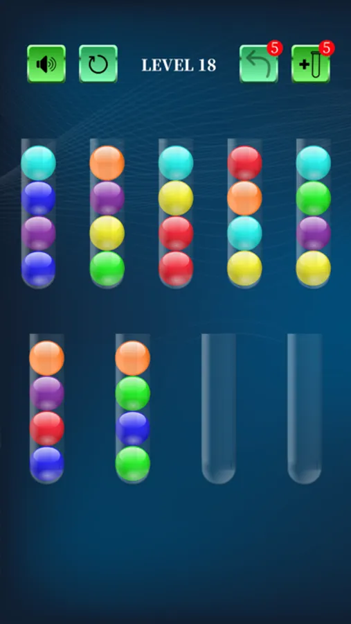 Simple game rules: Sort the colored balls in the bottles until all of the same colored balls are in the same bottle.
