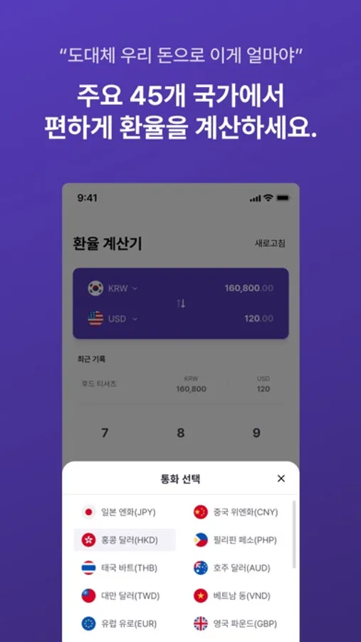 Instantly convert currencies from 45 major countries.