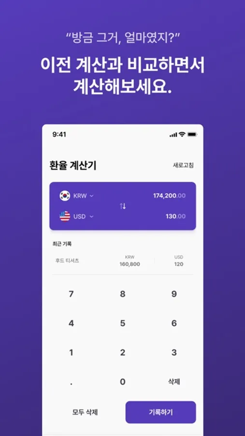 With the Record feature, save your calculations and check exchange rates at a glance.