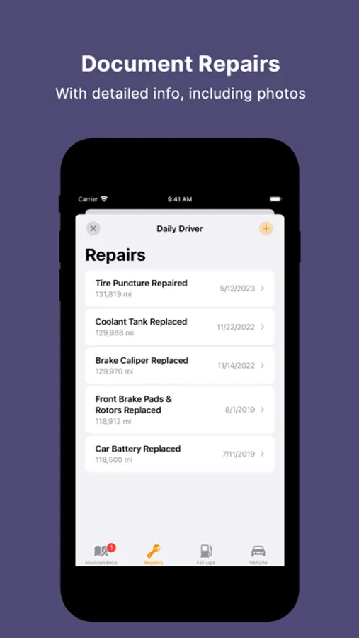 - Create detailed repair records, including photos (great for keeping digital copies of receipts)