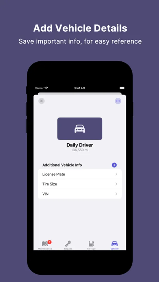 - Add additional vehicle information, like VIN or tire size, for easy reference