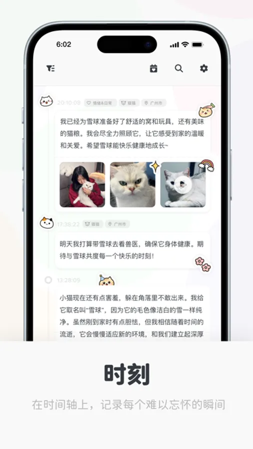 时刻日记是一款全平台的时间轴日记软件,它简洁清晰,操作便捷,让你能够快速记录生活中的重要时刻。你可以通过文字、图片、标签、贴纸、位置....等多种方式,将自己的心情和感受记录下来,打造属于自己的独特日记风格。除了记录以外,我们还增加了许多的回忆探索模式,让你可以通过日记重温当时的心情。