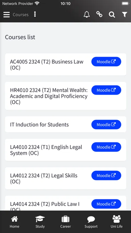 - Personalised links to your Moodle course pages.