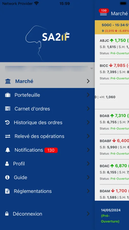 ‘‘L’utilisation de l’application SA2IF MOBILE est réservée aux détenteurs d’un compte titres au sein de notre SGI’’
