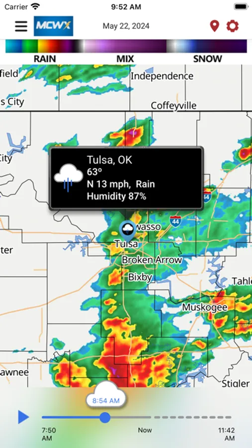 Love how you can move the Radar Timeline with the cursor! Gives a Better idea when and where the Storms are at.