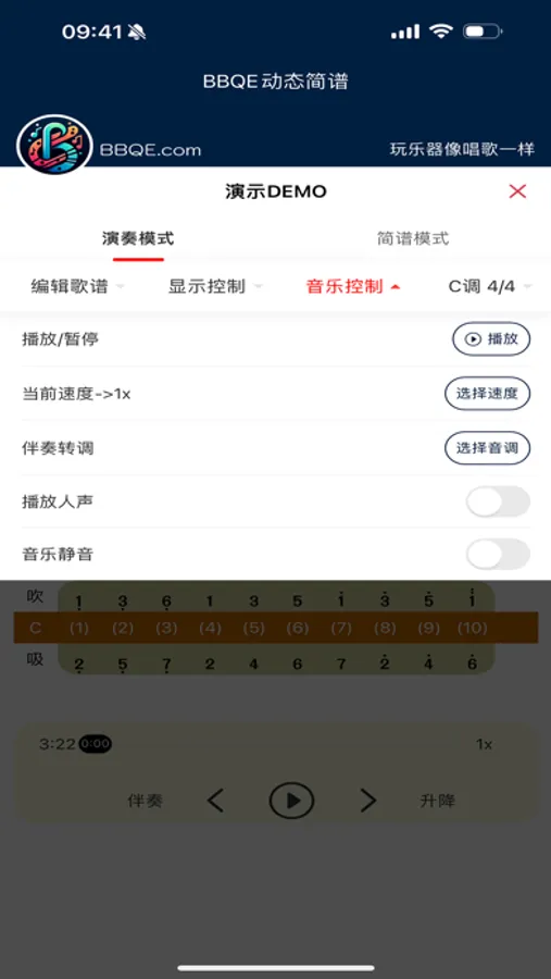 BBQE(BeatBook QuickEasy),一款革新的动态简谱工具,专为音乐爱好者打造。简化的界面和去除专业标记,使得任何人都能轻松上手。它不仅提供智能伴奏生成,还支持简谱和伴奏的智能变调功能,使您能根据自己的声音调整音乐。动态简谱演奏和练习模式让学习和练习过程充满乐趣,提高演奏技能。BBQE遵循“只要会唱歌就能演奏”的理念,确保每个用户都能体验到音乐的真正乐趣。