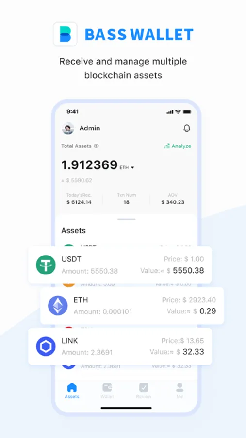 BassWallet (Blockchain as Service) is an enterprise digital asset management application that supports developer-friendly API access, multiple sub-account management, multiple addresses for receiving digital assets, one-click collection, billing reports and other functions. Provides APP mobile and desktop management applications.
