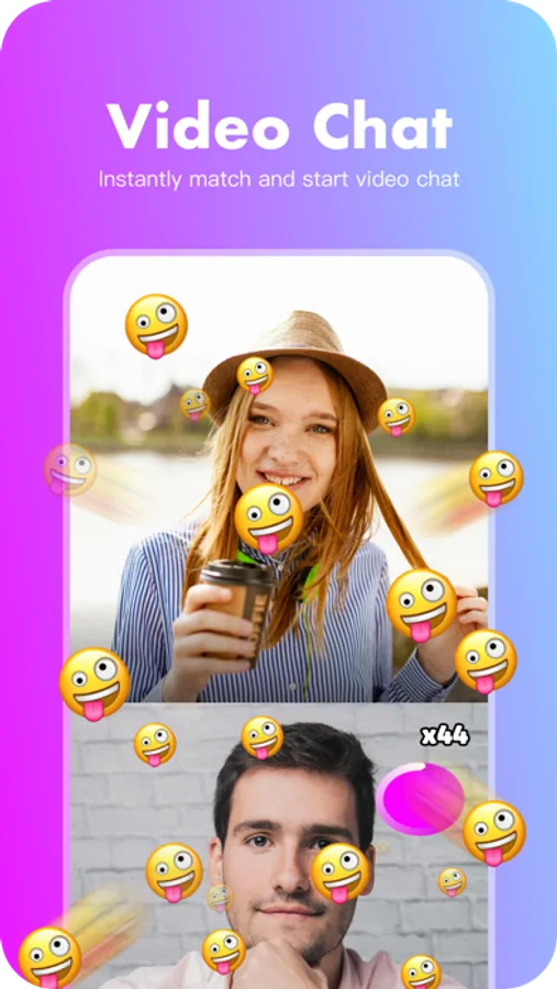 - Easy to use cam to cam chat, just click the screen then chat with real people
