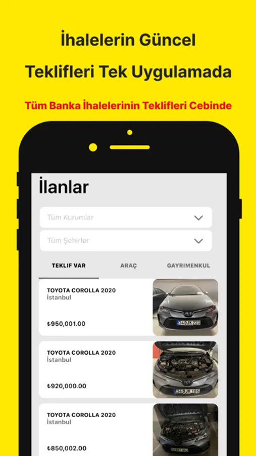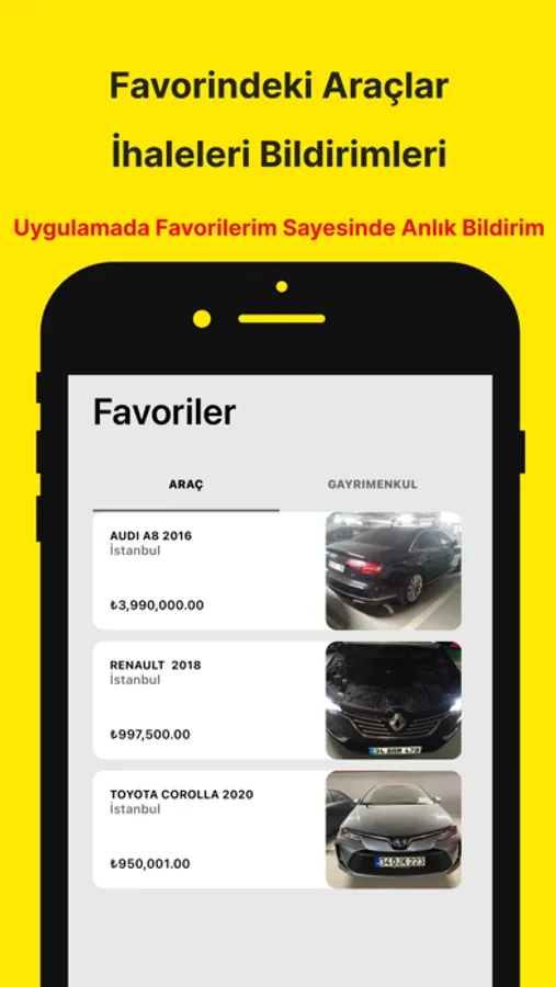 • Favorilerine eklediğin ihalelere gelen teklifleri anında telefonuna bildirim olarak düşsün.