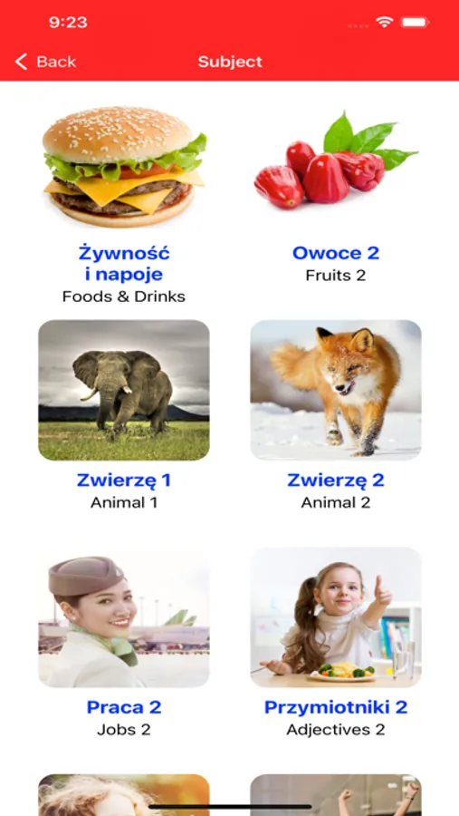 * Animals: includes 90 animals with real pictures of them. Your you very love animals so it help you impression and want to learn Polish.