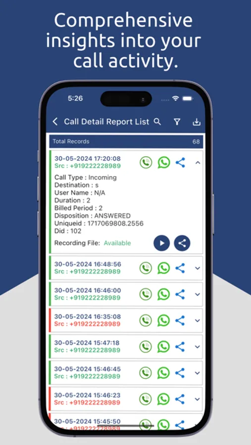 Share Recordings and CDR on the Move: Seamlessly share call recordings and call detail records (CDR) on the go, enabling you to collaborate effectively and stay informed, wherever you are.