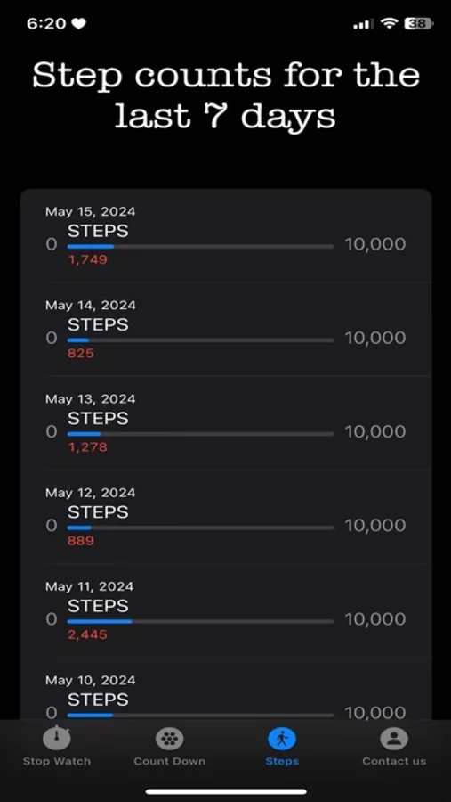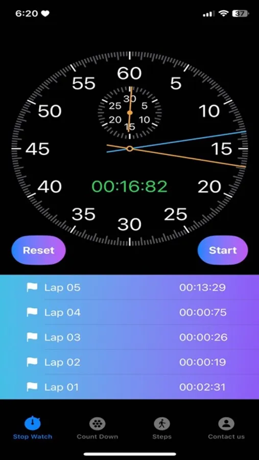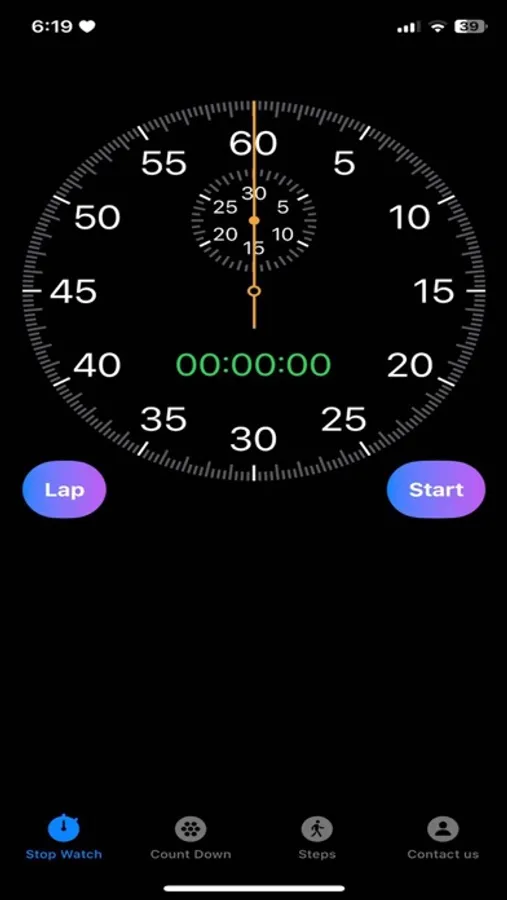 Introducing the ultimate stopwatch companion for your Apple device! Our app not only features a versatile stopwatch with a countdown function but also provides detailed lap times and total times for each lap, giving you precise insights into your performance. Additionally, track your step counts over the past 7 days, helping you stay motivated and on target with your fitness goals. Download now and experience the perfect blend of functionality and convenience!