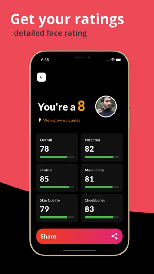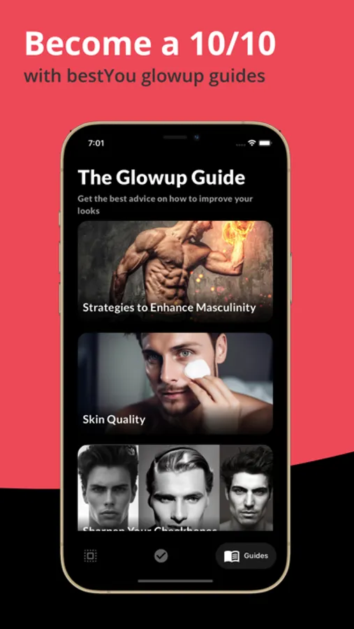 BestYou AI is your ultimate companion on the path to becoming the best version of yourself. Our innovative app utilizes advanced AI to analyze your facial features, including jawline, cheekbones, skin quality, and overall harmony.