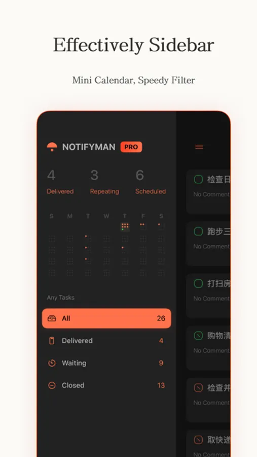 • Notification Widgets: View, snooze, or complete tasks directly from the notification center—no need to open the app.
