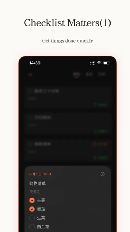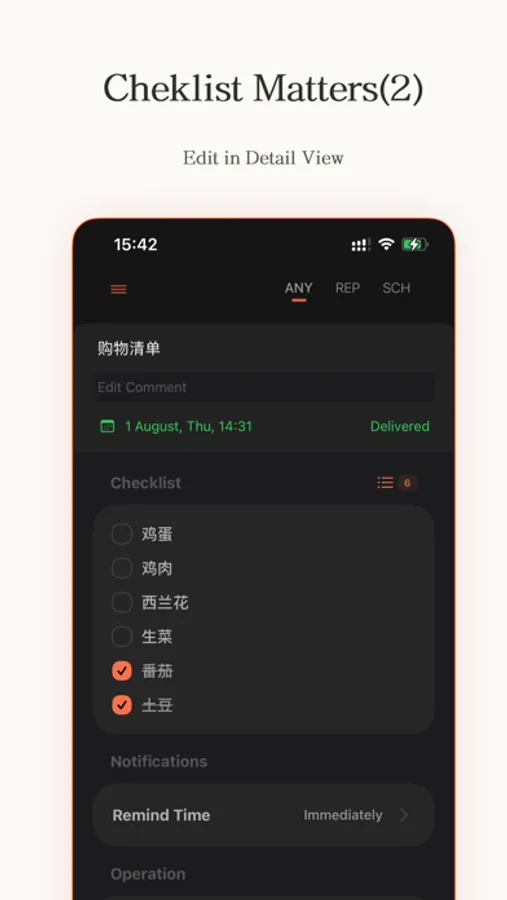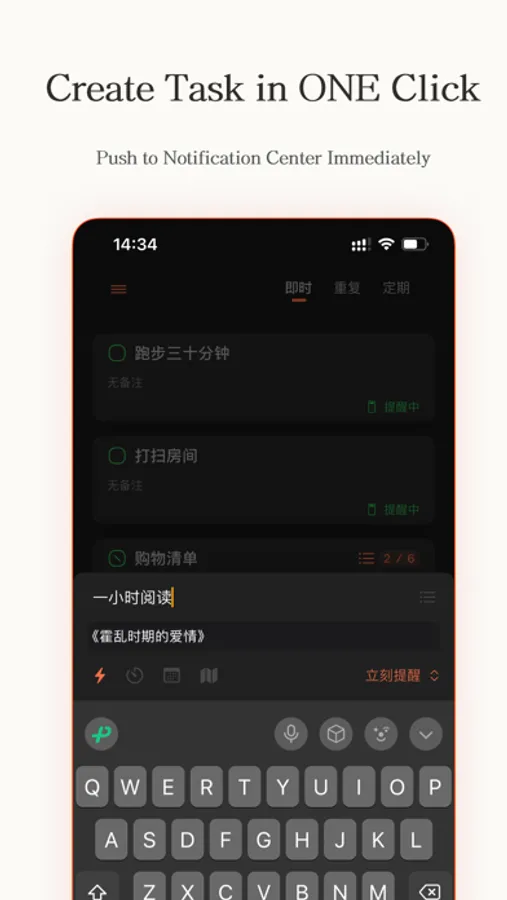 In Reminder List, every task must have a time. No more overlooked tasks because you forgot to set a reminder. If you don’t specify a time, the default is now—and the notification will appear immediately and stay until completed.