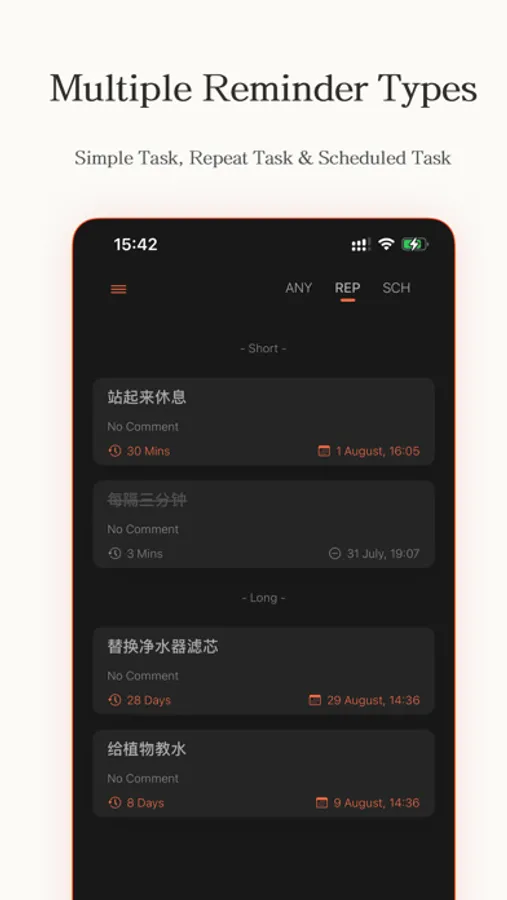 • Repeating Tasks: Create reminders that repeat every X minutes, hours, or days.