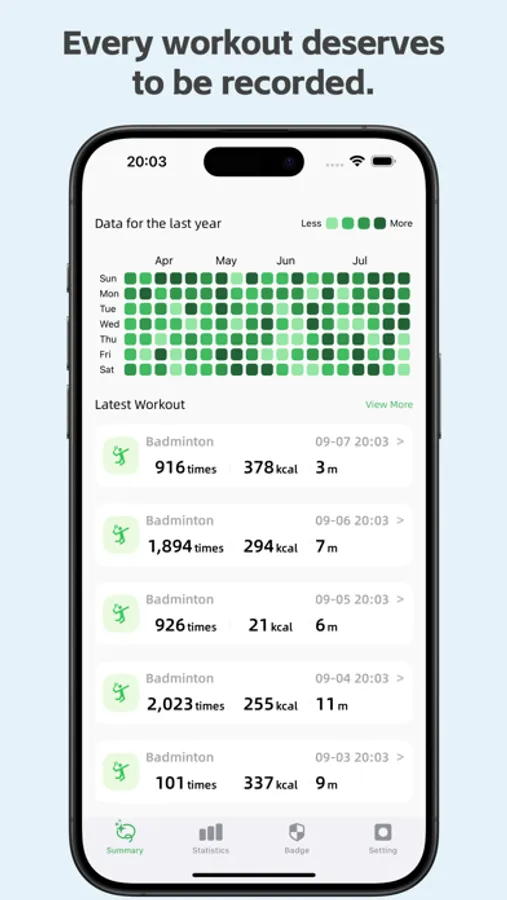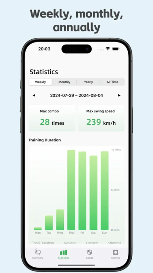 KeepSwinging App is a high-quality and highly accurate badminton tracking app. By analyzing sensor data from your Apple Watch, combined with machine learning technology, it provides detailed analysis and recording of various metrics, including overhead, underhand, forehand, backhand shots, maximum racket speed, and swing counts.