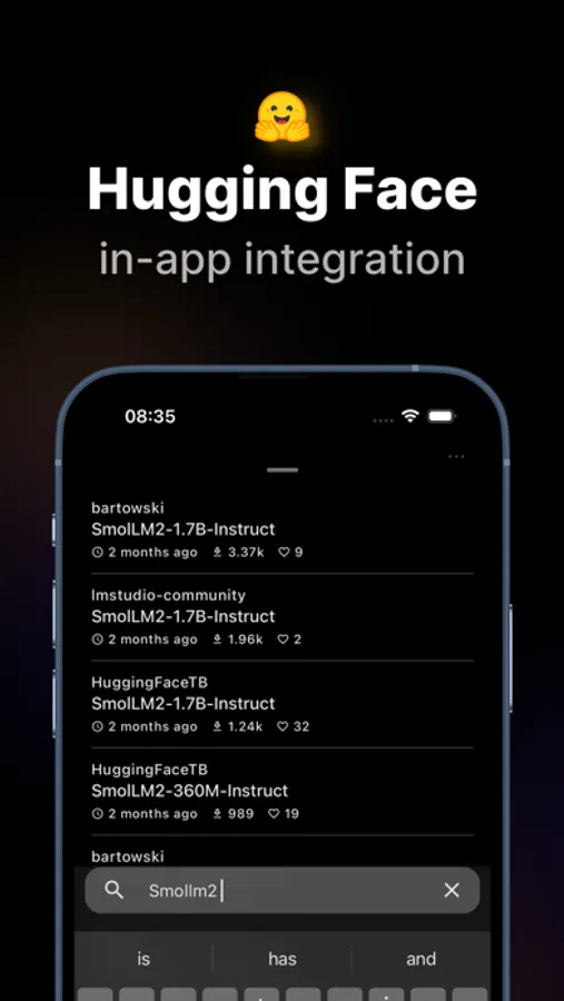 - Hugging Face Integration: Search for GGUFs on Hugging Face directly within the app, bookmark or download your favorites.