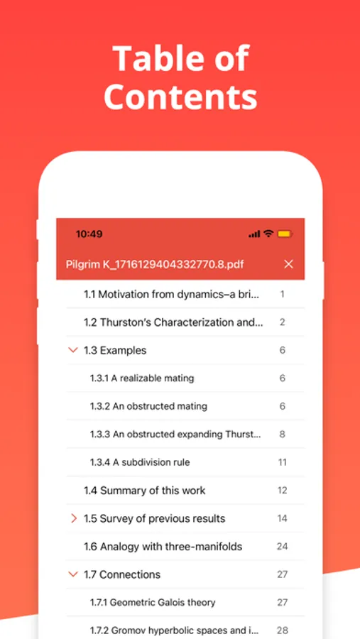 - Explore lengthy documents with ease using our table of contents feature. Jump directly to specific sections or chapters with a single tap, or bookmark important pages for quick reference later on.