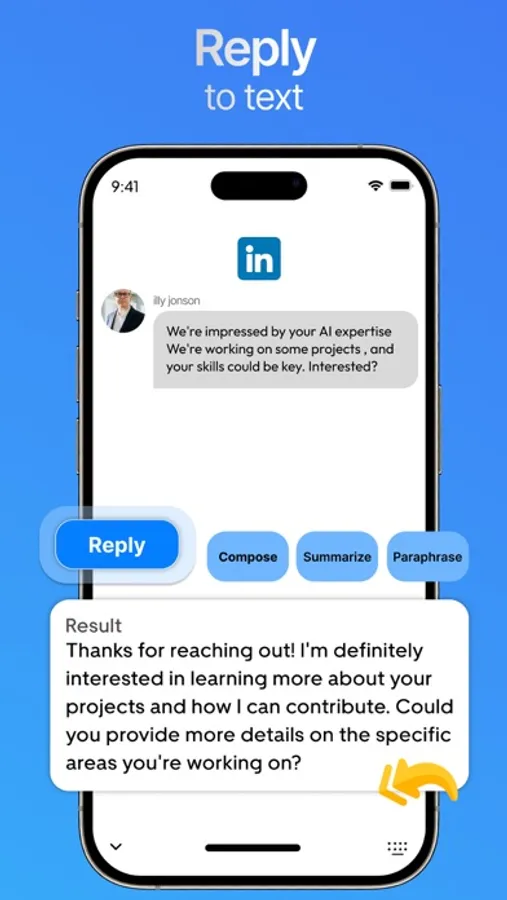 Respond to messages swiftly and intelligently with AI Typing Keyboard & AI Writer! Our app analyses incoming texts and suggests appropriate replies, making your responses quicker and more effective.