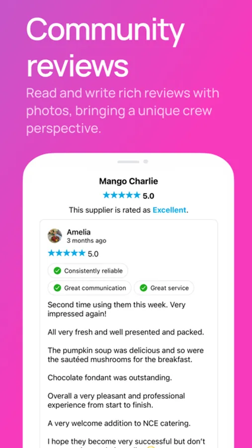• *Authentic Crew Reviews:* We get the power back. Real reviews from verified crew members, complete with ratings and photos, guide our decisions.