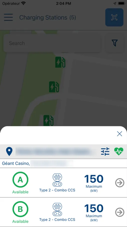 Search for charging stations around your position