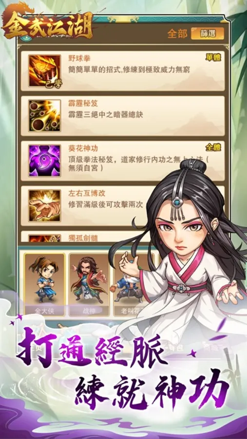 在這裡,每位俠客都擁有絕世神功,讓您在戰鬥中展現武藝,挑戰更高的境界。
