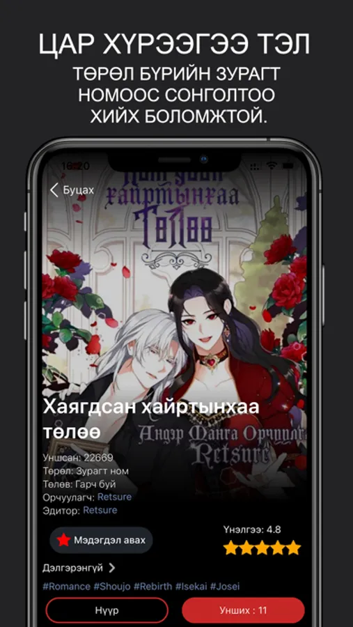Дуртай зурагт ном, новел, өгүүллэгийг өөрийн төрөлх хэлээр уншихыг хүсдэг хэн бүхэнд чанартай орчуулга, шинэлэг байдал, тогтмол шинэчлэлтийг хийж танд төсөөллийн мянга мянган ертөнцийг оюунаараа туулах боломжийг бид танд олгоё.