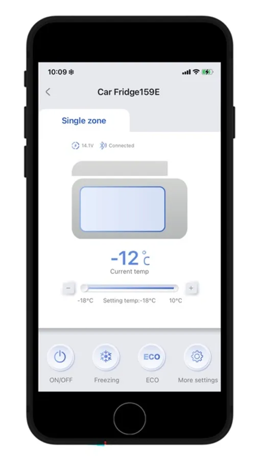 Connect and pair with your car fridge via Bluetooth. Once paired successfully, you can use the app to check the fridge temperature, operating mode, and more. Additionally, you can set the temperature, control the power, and switch temperature units all through the app. This application makes it convenient for you to control your smart car fridge, enhancing your user experience.