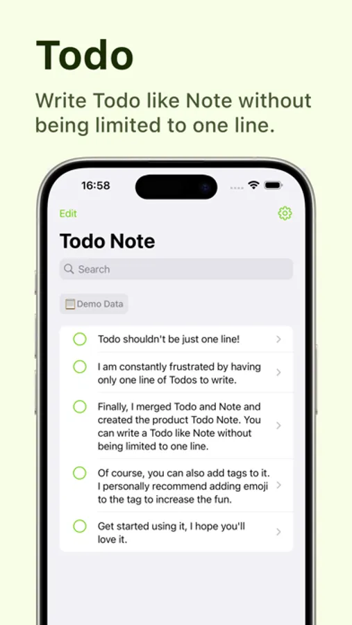 Finally, I merged Todo and Note and created the product Todo Note. You can write a Todo like Note without being limited to one line.