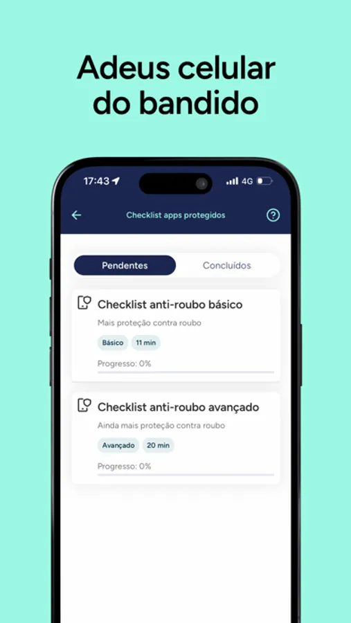 • Proteção atualizada ⟶ Checklist sempre atualizado com as últimas inovações de segurança de cada fabricante de celular