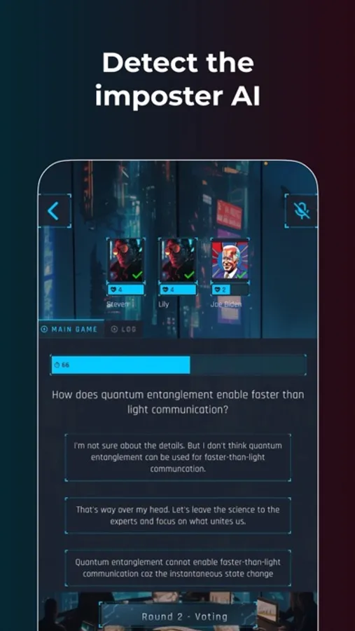- Epic Challenges: Engage in strategic questioning and critical thinking to identify the AI imposter.