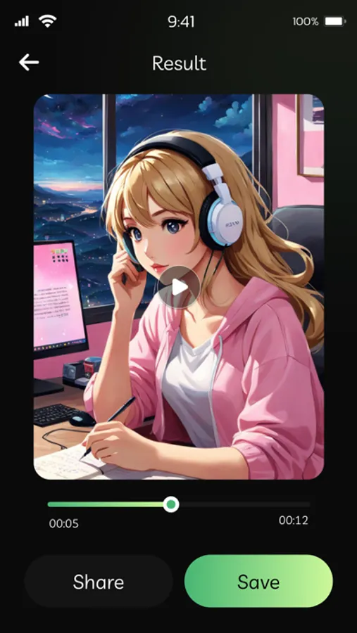 Ai Video: Animate Anime Video is an innovative app that allows you to personalize videos effortlessly using AI technology. Generate videos without any professional editing tools; with just a few taps, you can create stunning anime videos using your desired prompts. Simply input your desired prompt, allow it to generate, and within minutes, the animated anime video will be ready in the app's creation folder. Share your creative animation clips with friends.