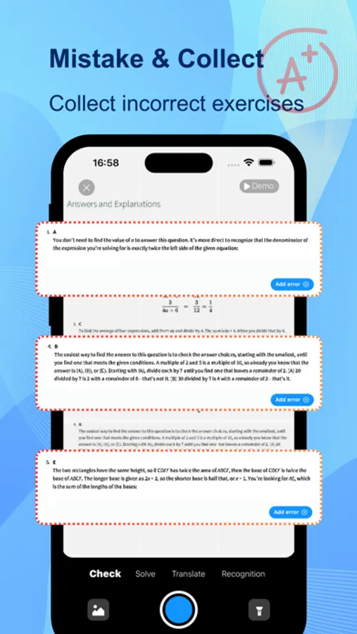 Take photos and scan the workbook or test paper, automatically segment questions, quickly collect incorrect questions, refuse to copy by hand, and provide learning efficiency.