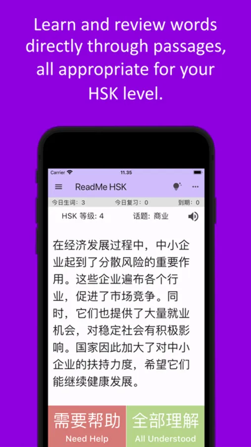 Are you tired of memorizing words without context only to forget them the next day? Do you know lots of words already, but still struggle to express yourself or comprehend complex sentences? ReadMe HSK is for you!