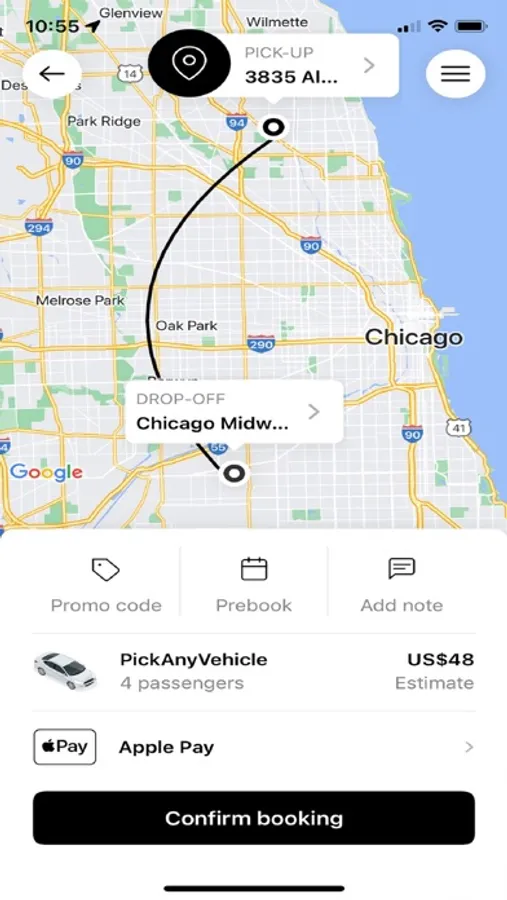 The Riide NOVA application retains a history of your previous reservations for expense management and to quickly rebook the same trip with the push of a button.
