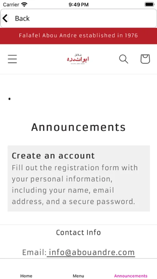 Falafel Abou André is a renowned Lebanese fast-casual restaurant, steeped in tradition, nostalgia and family values, proudly serving our Lebanese community since our inception in 1976. For nearly 50 years, we've been the leading name in the Falafel, Foul, and Hummus trade, dedicated to providing an authentic cooking experience crafted from the freshest, top-tier ingredients.