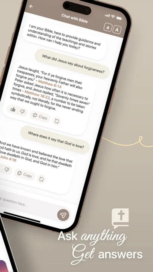 1. Ask Bible: Get instant answers for your questions from our AI Bible trained on entire bible. Best way to get your questions answered from scriptures and holy bible.