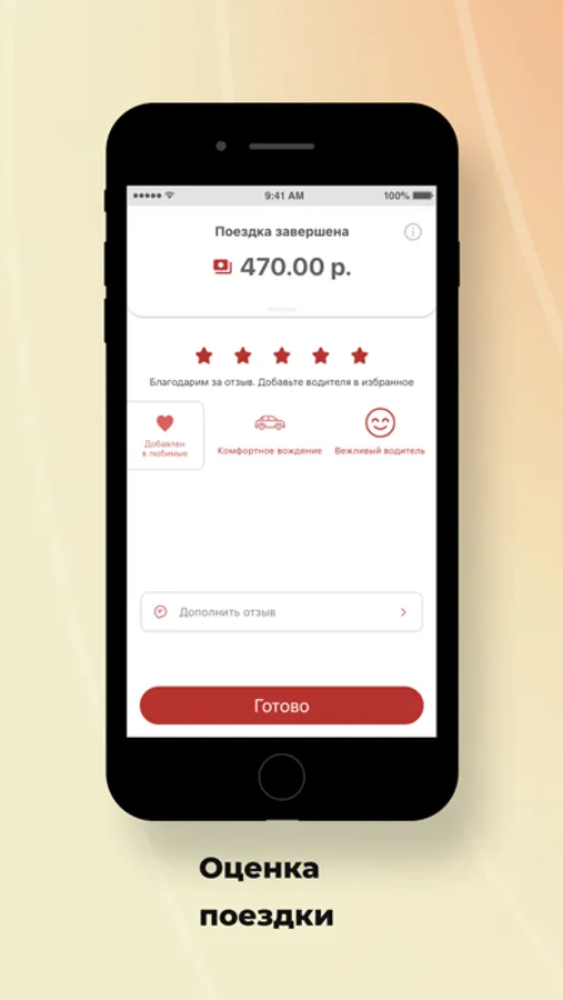Поставьте оценку водителю, напишите отзыв или выберите реакцию из готовых шаблонов или посмотрите детализацию платежей после поездки.