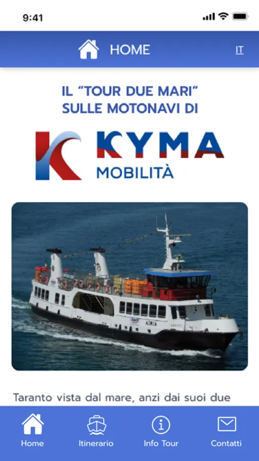 Con Kyma Mobilità Tour Due Mari puoi scoprire il tour esclusivo in motonave nel bellissimo golfo di Taranto e seguire in tempo reale il percorso ascoltando l'audio guida dedicata.