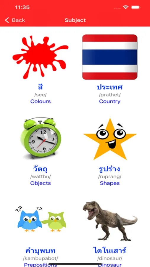 * Object: 40 common objects in real life. You will learn Thai name object around their life.