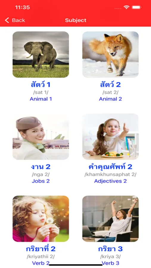 * Animals: includes 90 animals with real pictures of them. Your you very love animals so it help you impression and want to learn Thai.