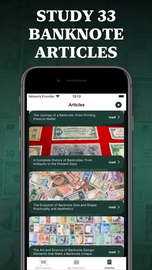 - Bill Scanner & Identifier - Scan and identify any banknote from all over the world. Snap photos of both sides of the banknote or upload them from your gallery to receive detailed info quickly, including the banknote's name, value, issuer, issue years, and much more.