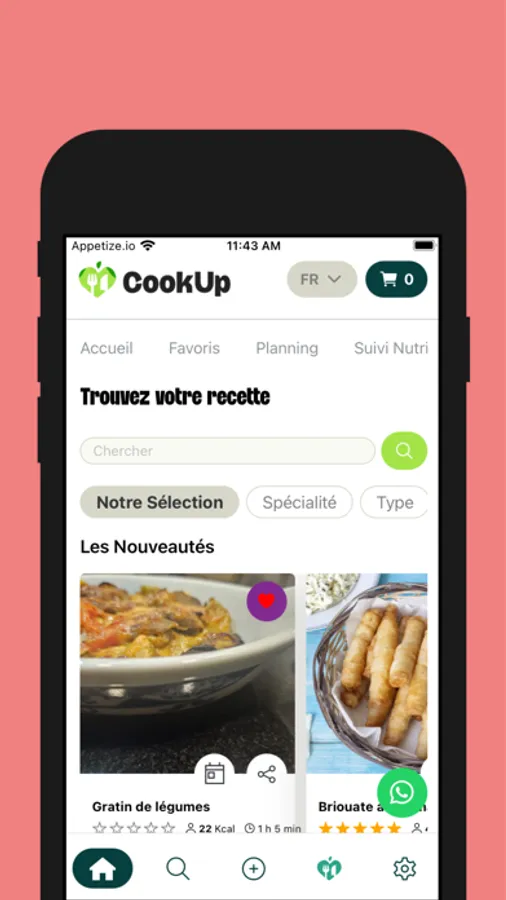 Cookup, ce n’est pas juste une appli de recettes, c’est votre passeport pour un tour du monde culinaire ! Avec des centaines de recettes, vous allez voyager sans bouger de votre cuisine. Et ce n’est pas tout, chaque plat est accompagné d’une vidéo 100 % gourmande, réalisée par des chefs et experts en cuisine qui vous livrent leurs secrets comme des pros. Et ne vous inquiétez pas ! Nos vidéos ne dépassent pas les 2 min, pas comme sur YouTube.
