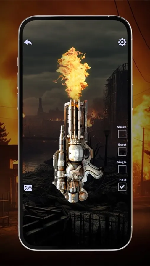 - Gun simulator: Choose from a variety of guns, each with its own sound. Tap to shoot and pick your favorite weapon skin. You can even choose firing modes like single, burst, hold, or shake. Explore different shooting scenarios and enjoy the authentic gun sounds!