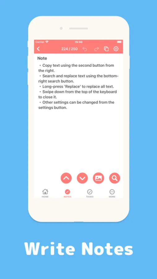 You can count the number of characters in a note, and perform text search and replace.