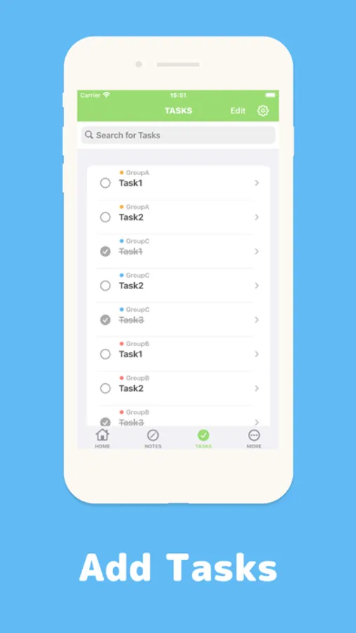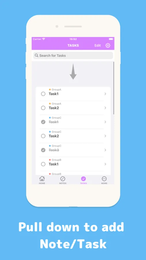 You can organize notes and Tasks by groups.