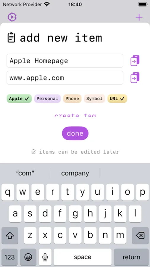 Copyboard is a simple productivity tool to copy frequently-used text snippets to your device pasteboard with just a single tap.